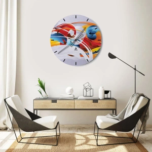 Ceas de perete - Ceas pe sticlă - Dansul elementelor - 30x30 cm