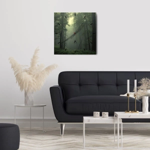 Ceas de perete - Înainte să se trezească - Pădure verde în ceață cu ace negre