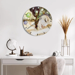 Ceas de perete - Vis de smarald și violet - Pictură abstractă în acuarelă cu o față feminină