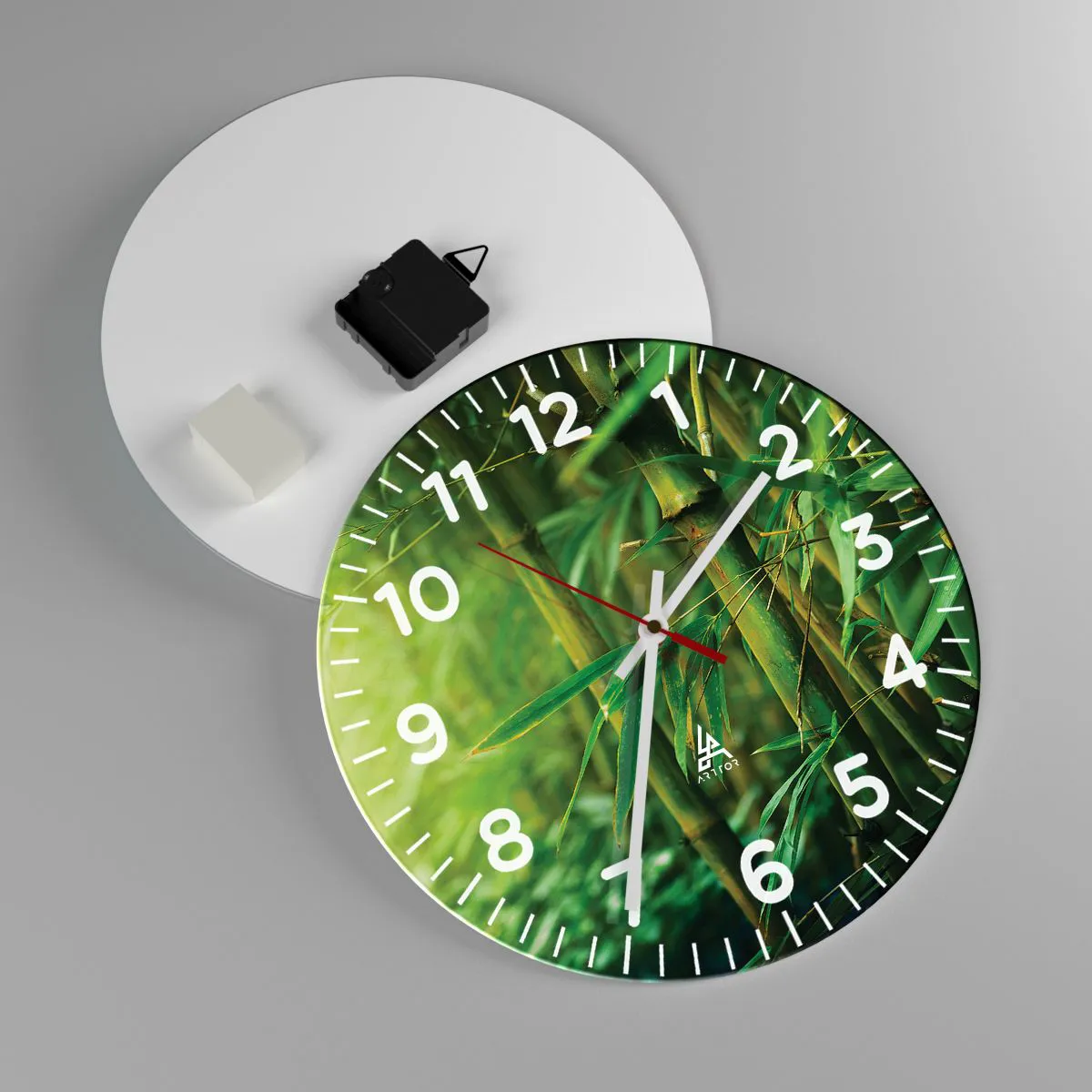 Ceasul este fabricat din sticlă securizată de 4 mm grosime. Tehnologia de fabricație a ceasului respectă clasa de siguranță 2B2 conform EN 12600:2004, care garantează rezistența la impact. Ceasul din sticlă este gata de agățat - are o agățătoare metalică fixată la partea din spate a ceasului și un distanțier din spumă pentru a regla distanța uniformă a ceasului față de perete. Ceasul are un mecanism silențios care funcționează cu ajutorul unei baterii AA de 1,5 V (nu este inclusă).