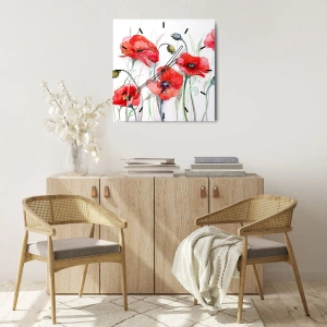 Ceas de perete - Ceas pe sticlă - Un cadran de ceas cu un motiv în acuarelă de maci roșii pe fundal alb. - 30x30cm - Flori poloneze - Decorațiune modernă pentru perete pentru living, bucătărie și dormitor ARTTOR
