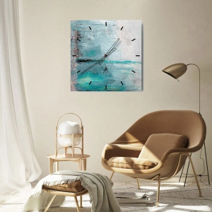 Ceas de perete - Ceas pe sticlă - Orizontal în albastru - 30x30 cm