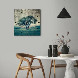 Ceas de perete - Ceas pe sticlă - Un măr pe o pajiște albastră? - 40x40 cm