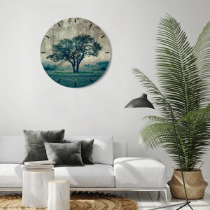 Ceas de perete - Ceas pe sticlă - Un măr pe o pajiște albastră? - 40x40 cm
