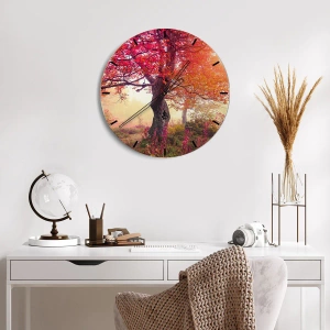 Ceas de perete - Fantezie de toamnă - Copac cu frunze roșii într-un peisaj de toamnă