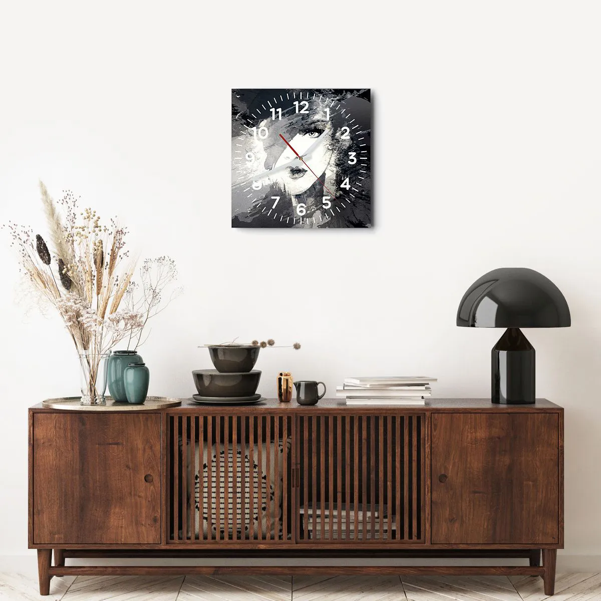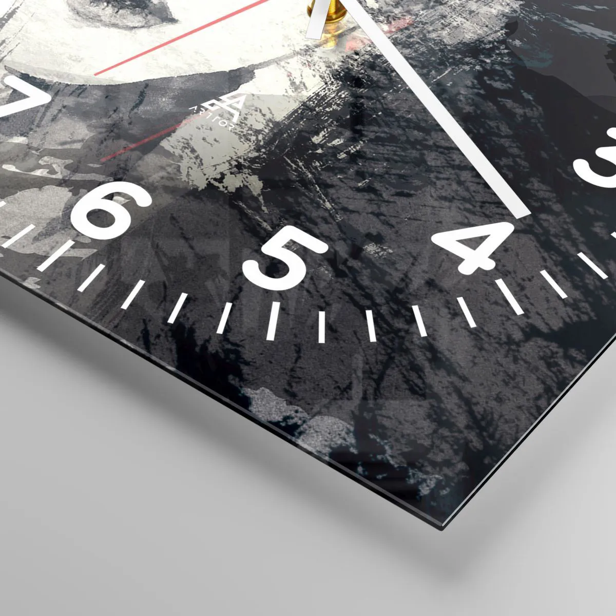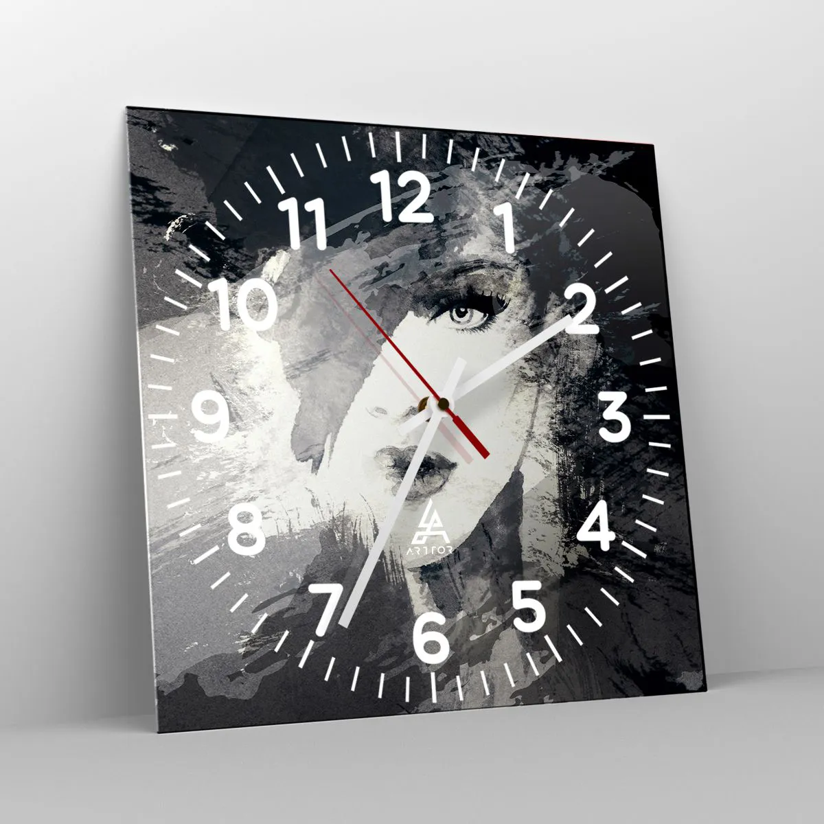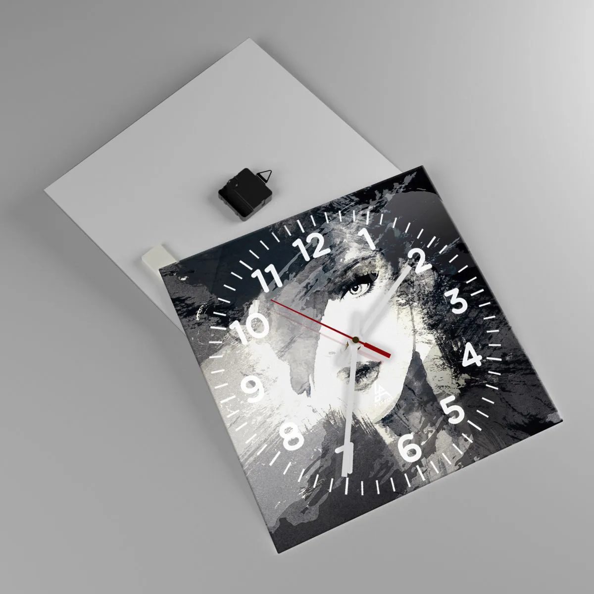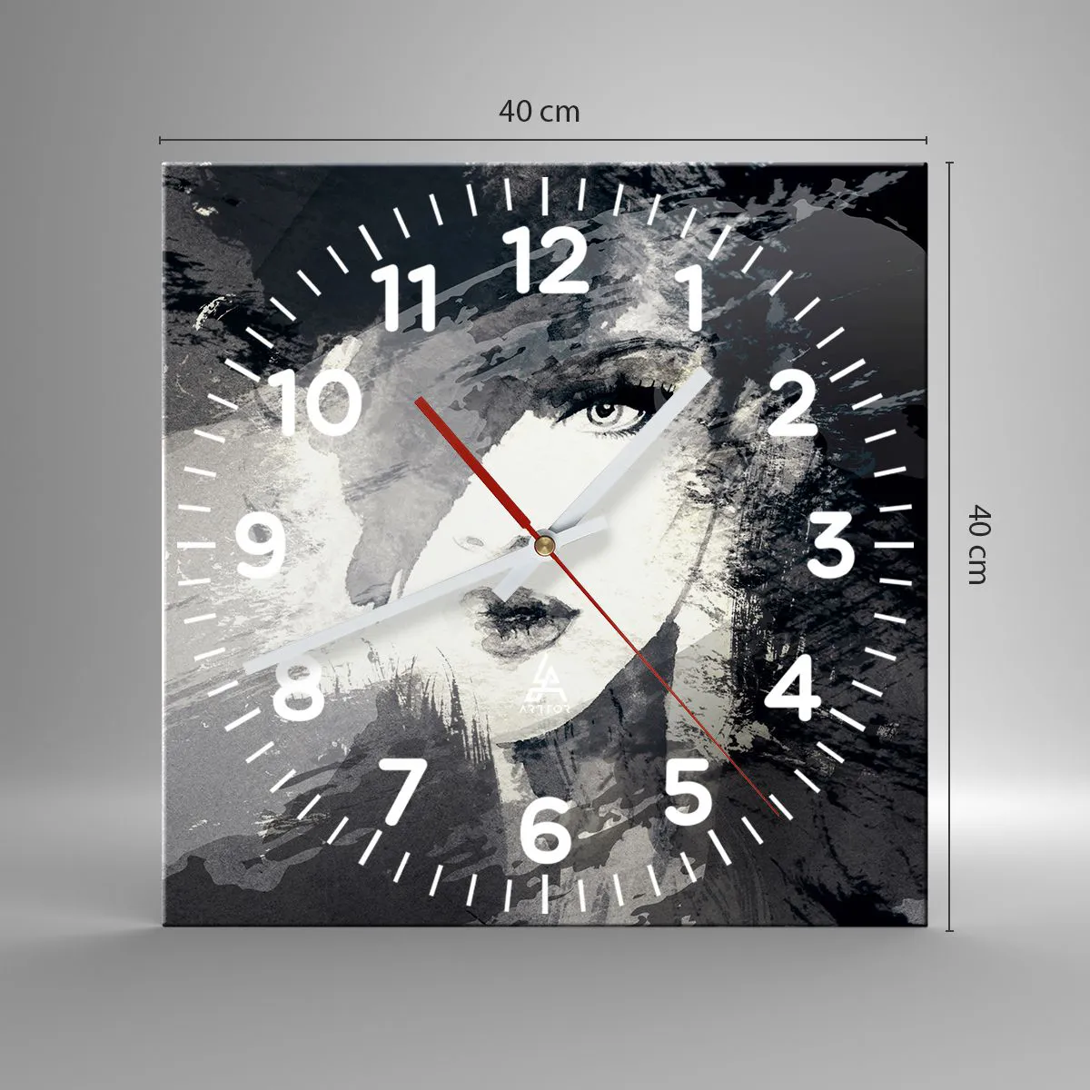 Ceas de perete - Ceas pe sticlă - Din spatele unui voal gri - 40x40 cm