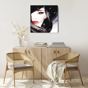 Cadarul ceasului înfățișează portretul unei femei cu o privire intensă, de safir, evidențiată de nuanțe delicate de roșu și negru. Lucrarea precisă și armonia culorilor conferă ceasului un caracter unic, făcându-l un plus perfect pentru interioarele moderne și clasice.