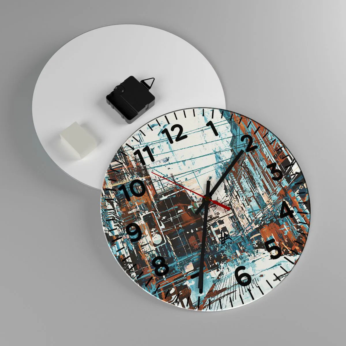 Ceasul este fabricat din sticlă securizată de 4 mm grosime. Tehnologia de fabricație a ceasului respectă clasa de siguranță 2B2 conform EN 12600:2004, care garantează rezistența la impact. Ceasul din sticlă este gata de agățat - are o agățătoare metalică fixată la partea din spate a ceasului și un distanțier din spumă pentru a regla distanța uniformă a ceasului față de perete. Ceasul are un mecanism silențios care funcționează cu ajutorul unei baterii AA de 1,5 V (nu este inclusă).