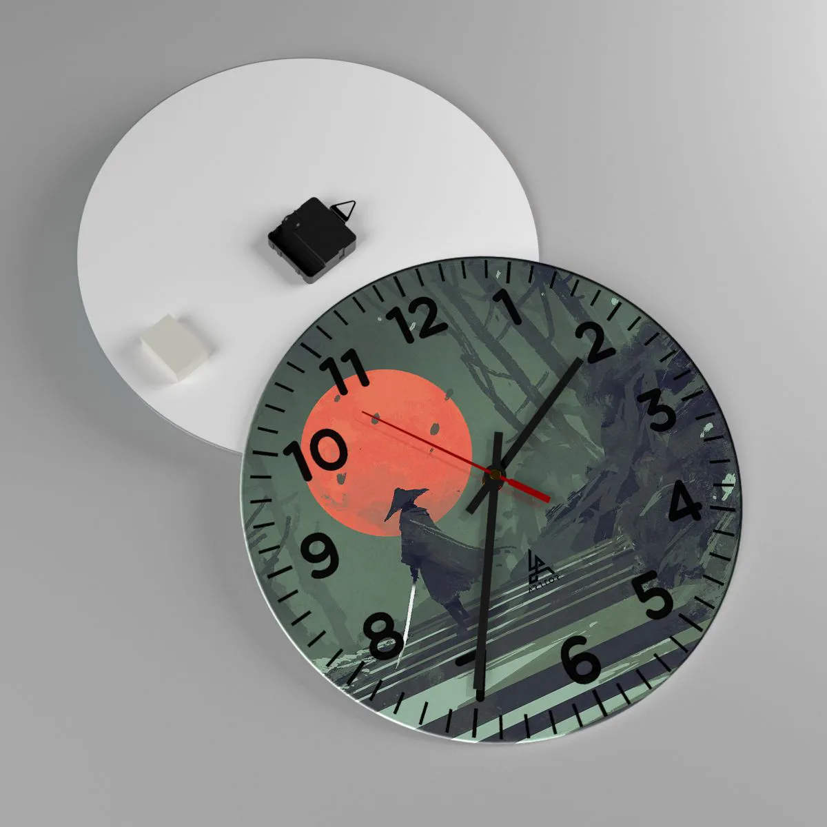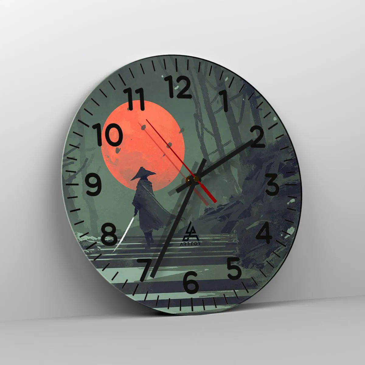 Ceas de perete - Ceas pe sticlă - Războinicul lunii roșii - 40x40 cm