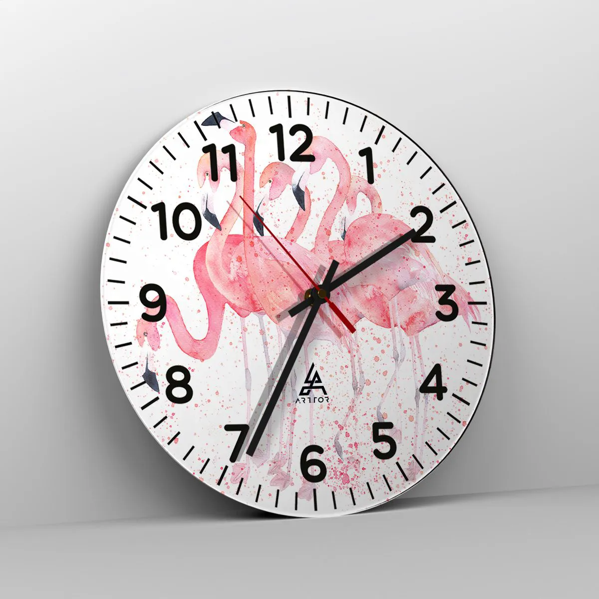 Ceas de perete - Ceas pe sticlă - Ansamblul roz - 40x40 cm