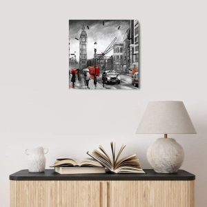 • Londra, oraș, arhitectură, Arhitectură, alb-negru, oameni, orașe, automobile, călătorii, vintage și retro, Pentru birou, Pentru birou, Pentru sufragerie, Pentru hol, Pentru living, Pentru dormitor, Negru, rosu, gri, negru si alb, Pătrat
