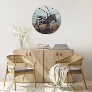 - Acest ceas de perete cu diametrul de 30 cm prezintă un motiv de zebră într-un cadru natural de savană. Perfect pentru iubitorii de natură și minimaliști.