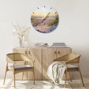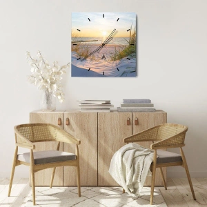 Ceas de perete - Ceas pe sticlă - Zumzet de mare, o plajă sălbatică printre ierburi... - 30x30 cm