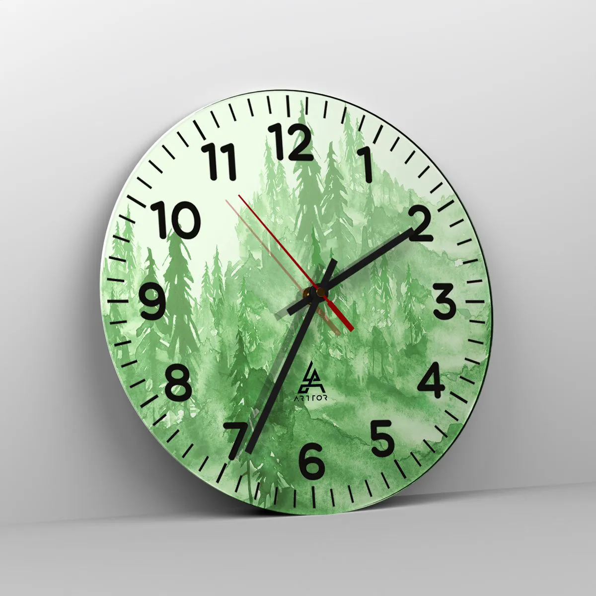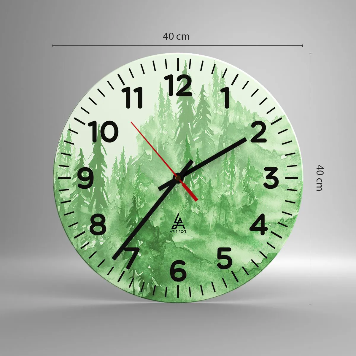 Ceas de perete - Ceas pe sticlă - Neclar prin ceața verde - 40x40 cm