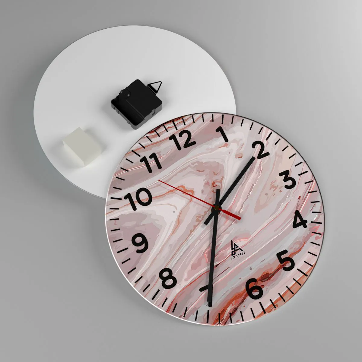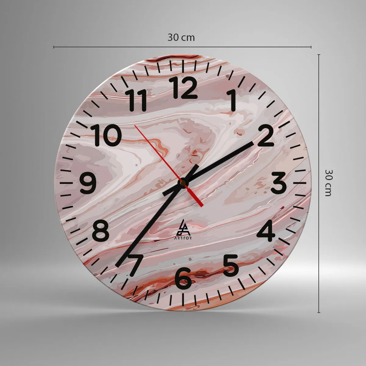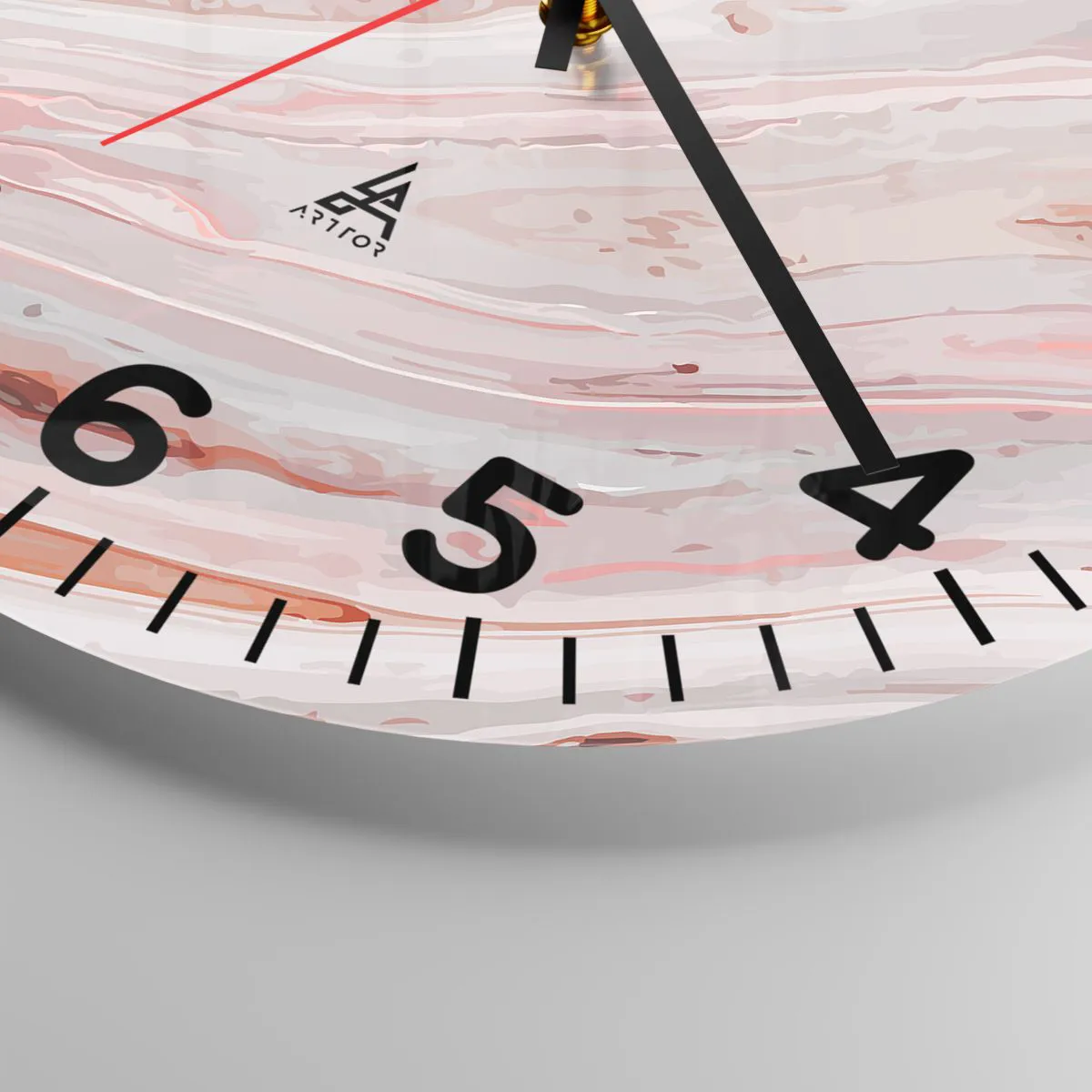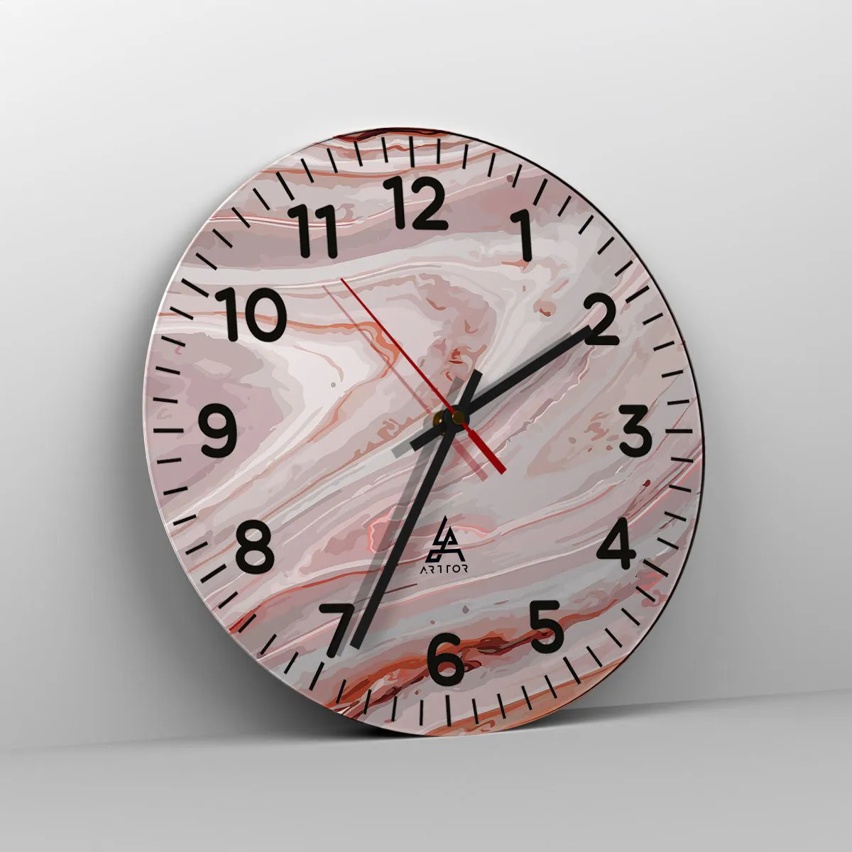 Ceas de perete - Ceas pe sticlă - Roz lichid - 30x30 cm