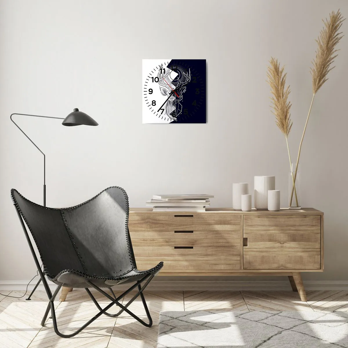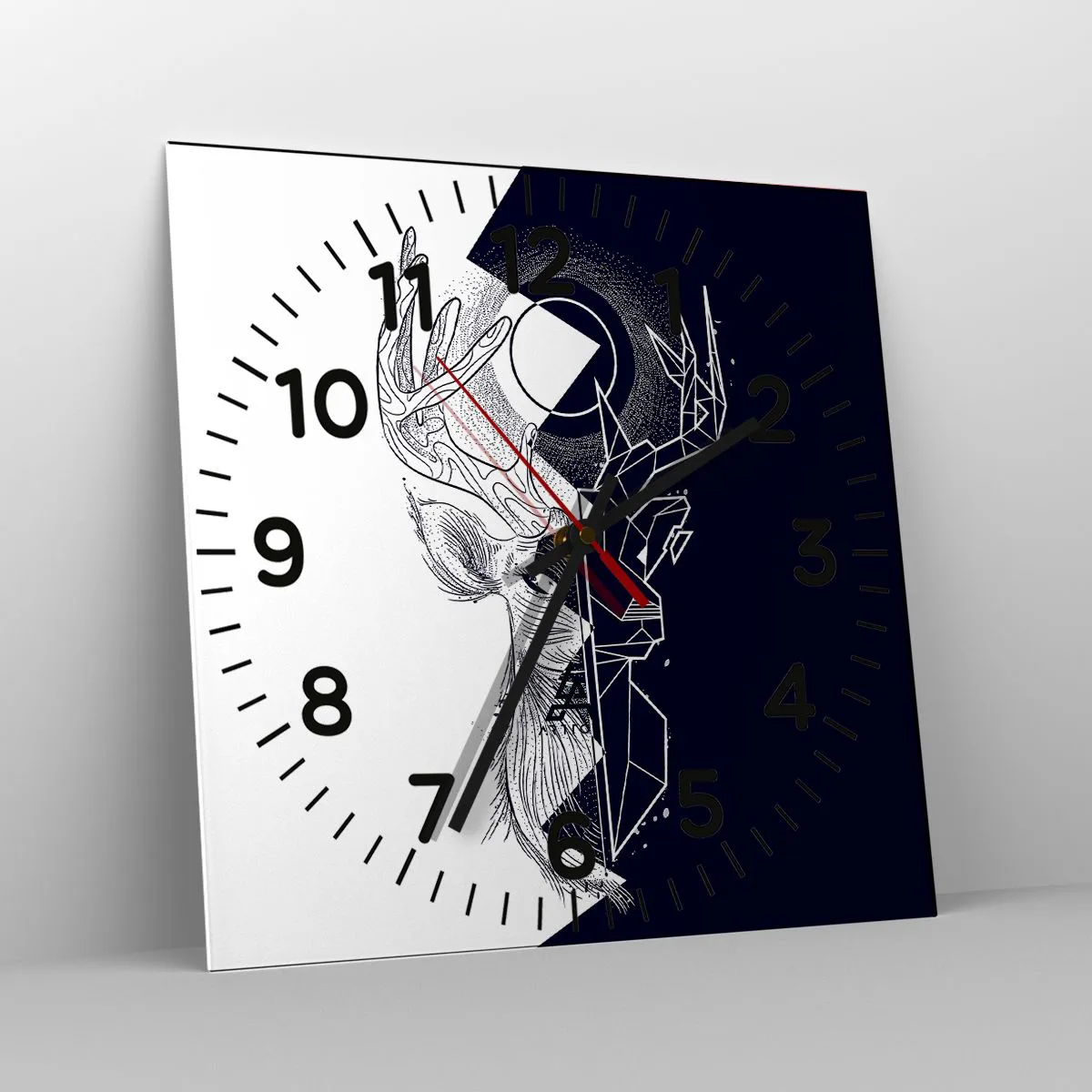 Ceas de perete - Ceas pe sticlă - Lupta și unitatea contrariilor - 30x30 cm