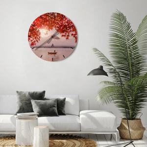 Ceas de perete - Într-o atmosferă japoneză - Frunze de toamnă cu Muntele Fuji în fundal și o barcă pe lac