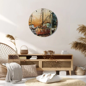 • Cutter de pescuit, Port de pescuit, Artă, Maritime, Peisaje, Art, Pentru birou, Pentru birou, Pentru sufragerie, Pentru baie, Pentru hol, Pentru living, Pentru dormitor, Maro, Portocaliu, Gri, Rundă