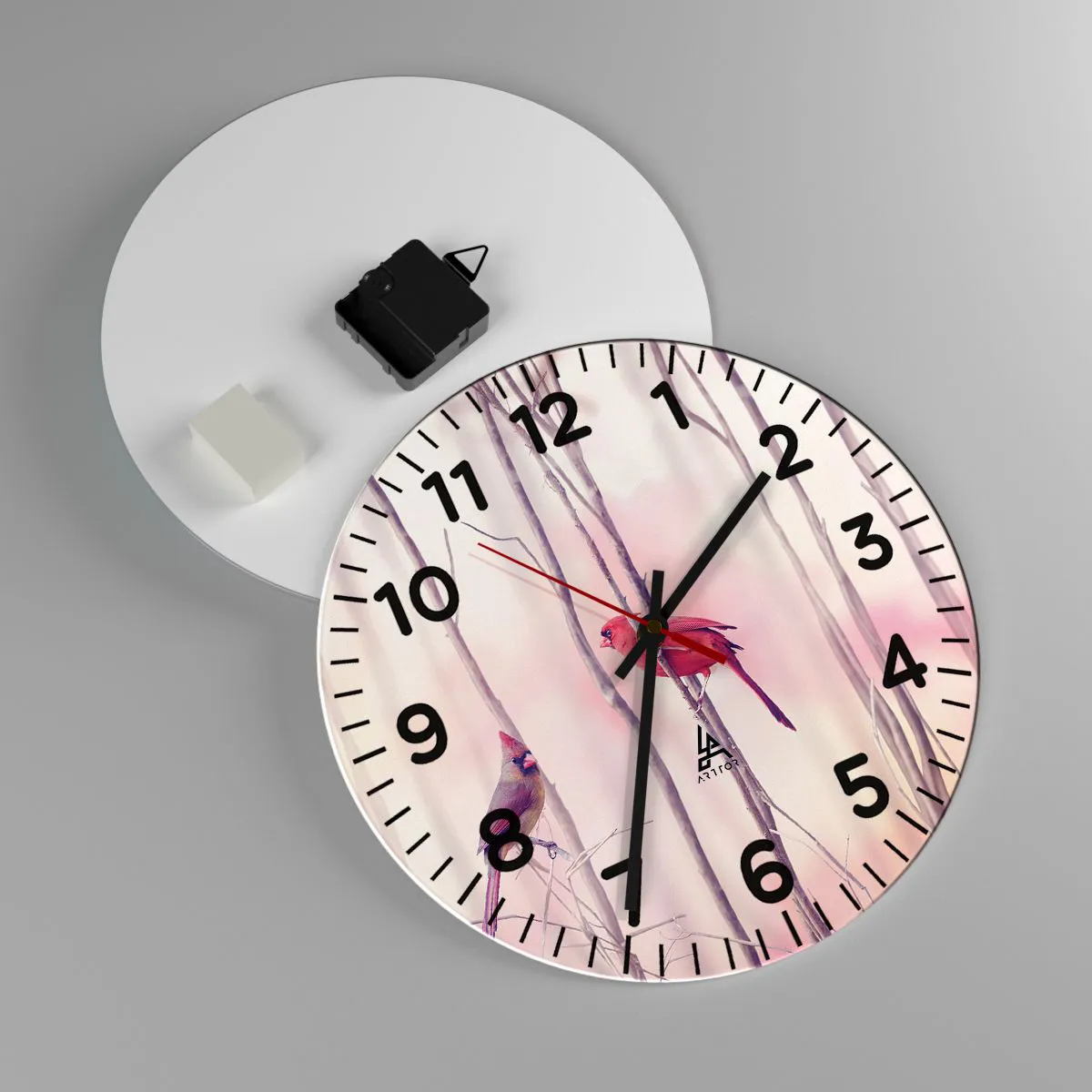 Ceasul este fabricat din sticlă securizată de 4 mm grosime. Tehnologia de fabricație a ceasului respectă clasa de siguranță 2B2 conform EN 12600:2004, care garantează rezistența la impact. Ceasul din sticlă este gata de agățat - are o agățătoare metalică fixată la partea din spate a ceasului și un distanțier din spumă pentru a regla distanța uniformă a ceasului față de perete. Ceasul are un mecanism silențios care funcționează cu ajutorul unei baterii AA de 1,5 V (nu este inclusă).