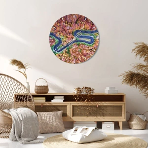 Ceas de perete - Ceas pe sticlă - Un drum șerpuit prin pădure - 40x40 cm