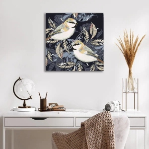 Ceas de perete - Ceas pe sticlă - Ciripirile galben-albastru - 40x40 cm