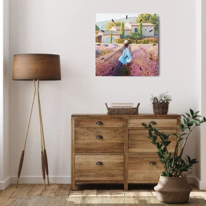 Ceas de perete - Ceas pe sticlă - Fata de lavandă - 30x30 cm