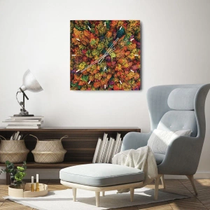 Ceas de perete - Ceas pe sticlă - Buchet de copaci de toamnă - 30x30 cm