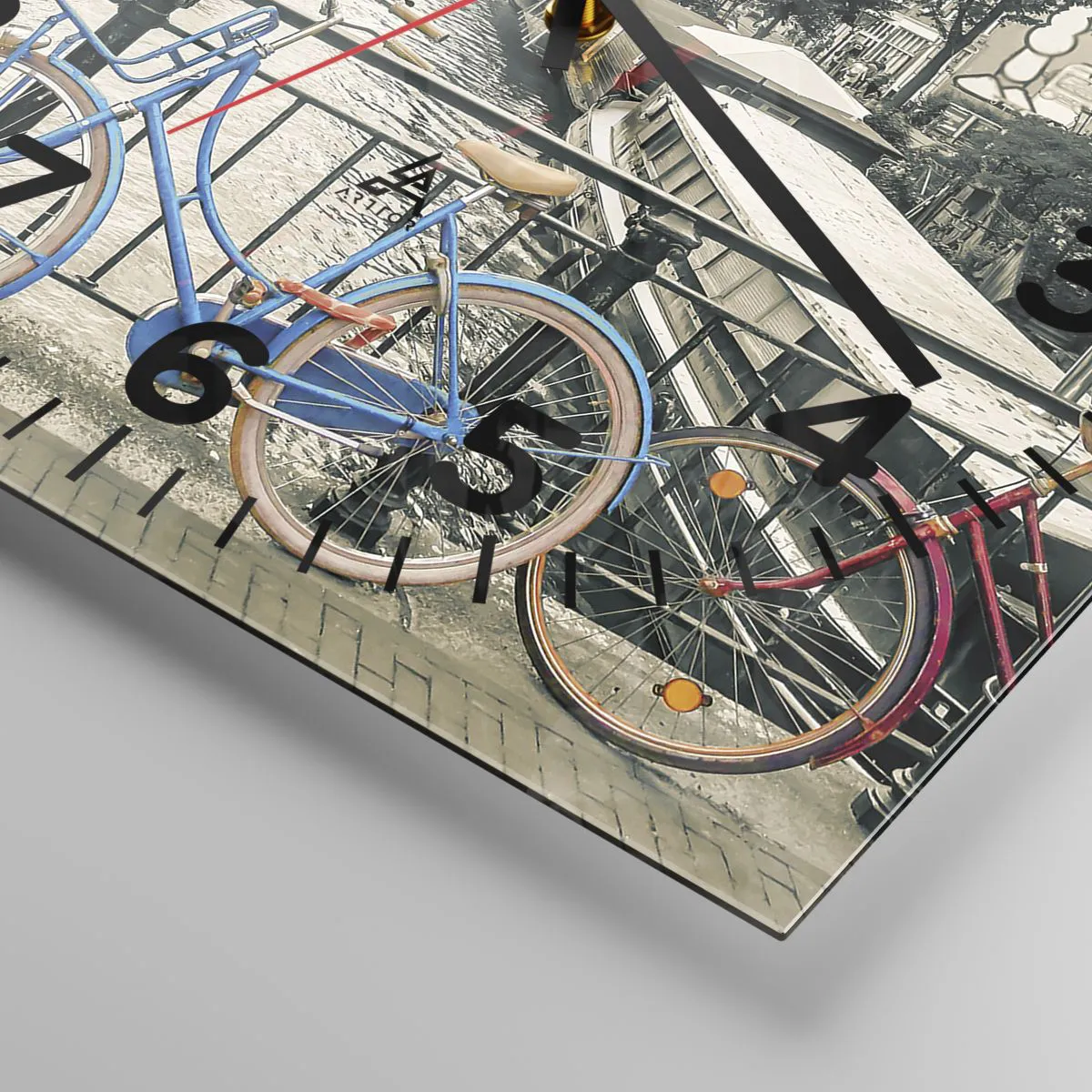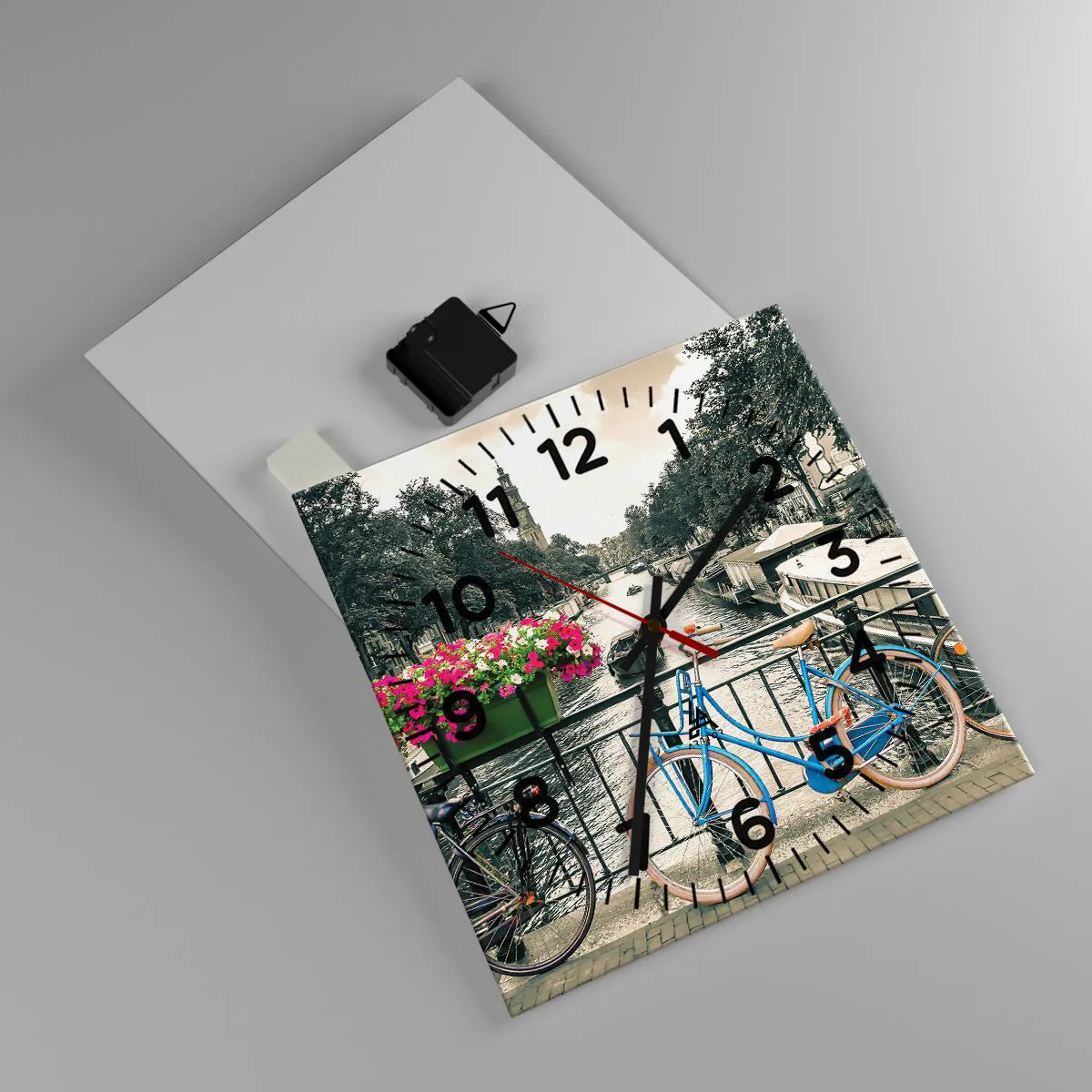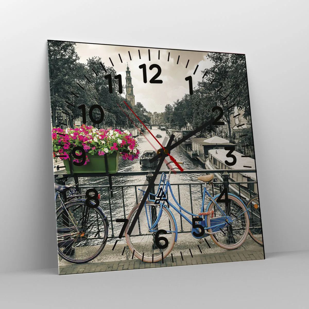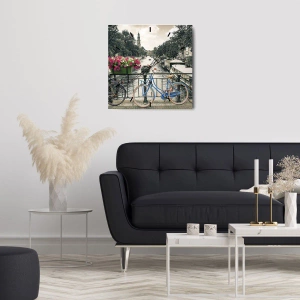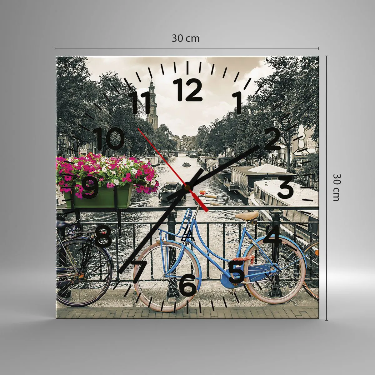 Ceas de perete - Ceas pe sticlă - Culorile unui canal din Amsterdam - 30x30 cm