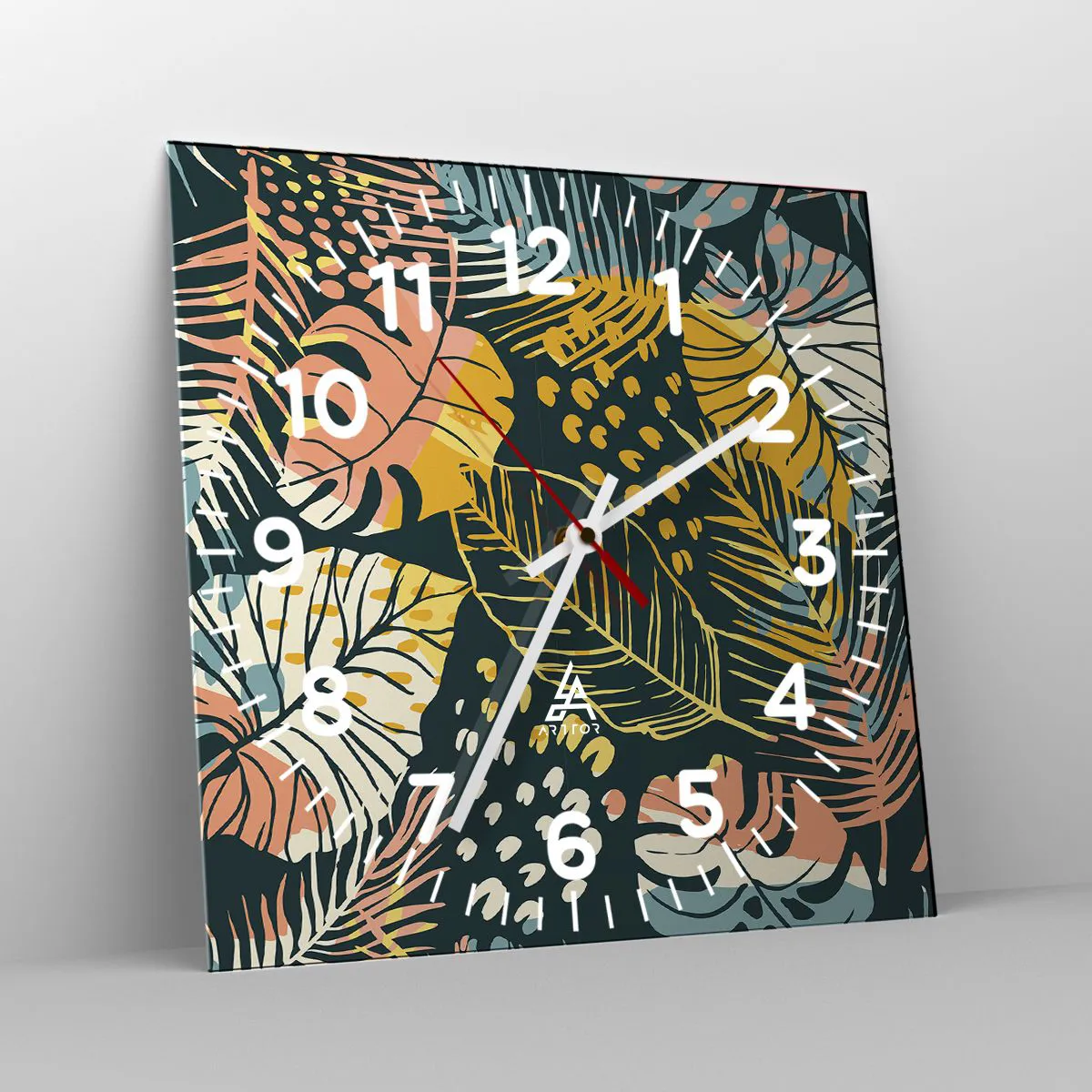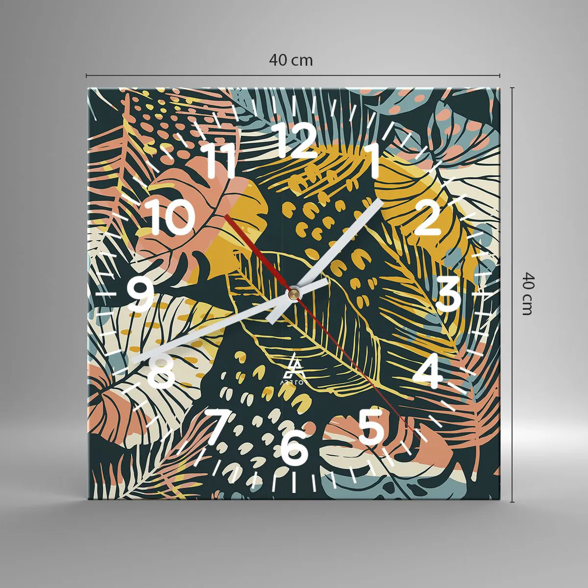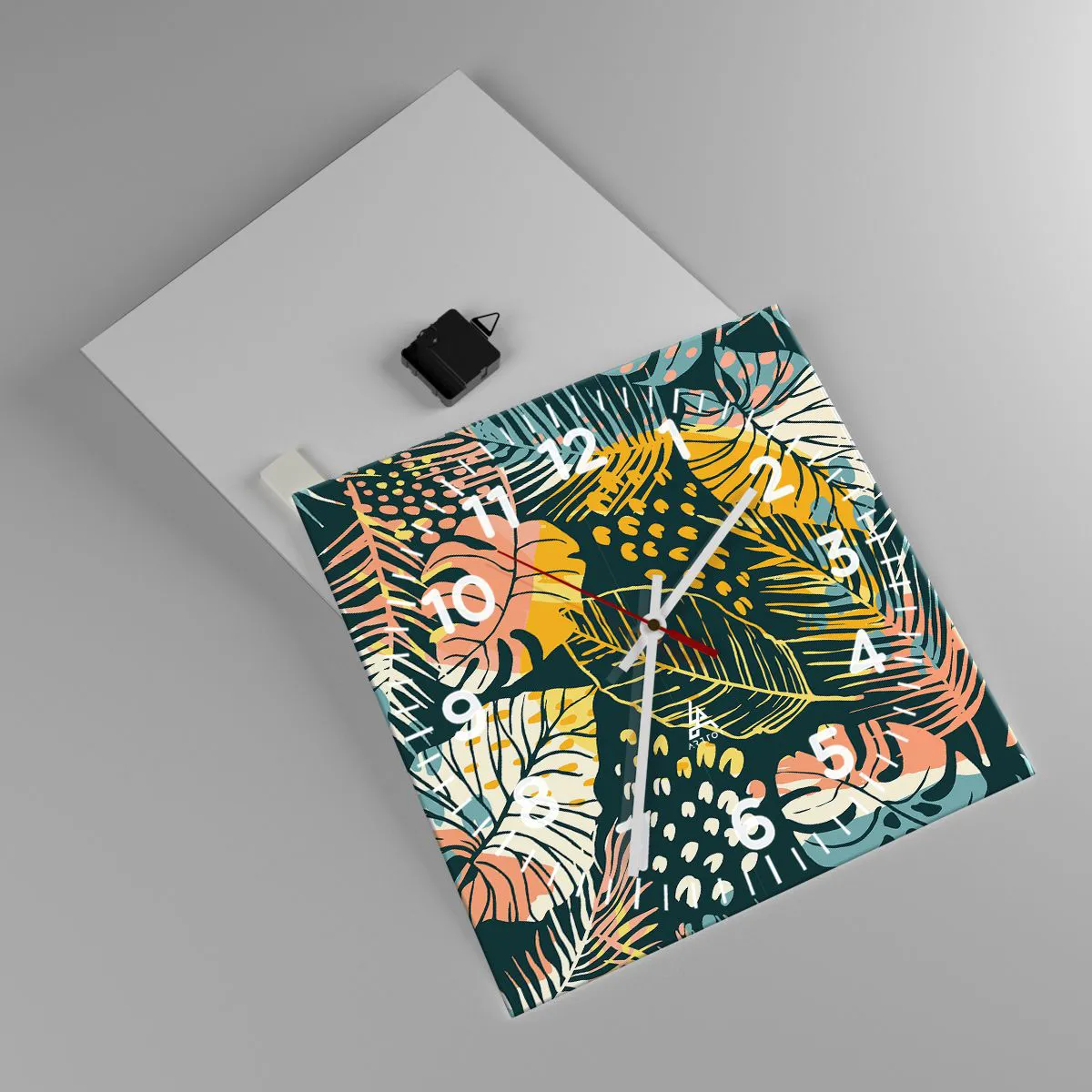 Ceas de perete - Ceas pe sticlă - Fantezie cu frunze - 40x40 cm