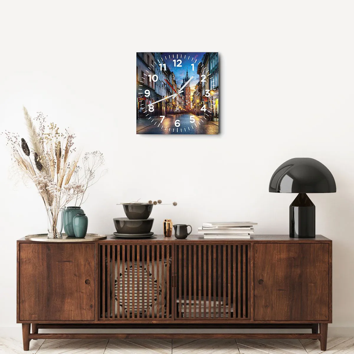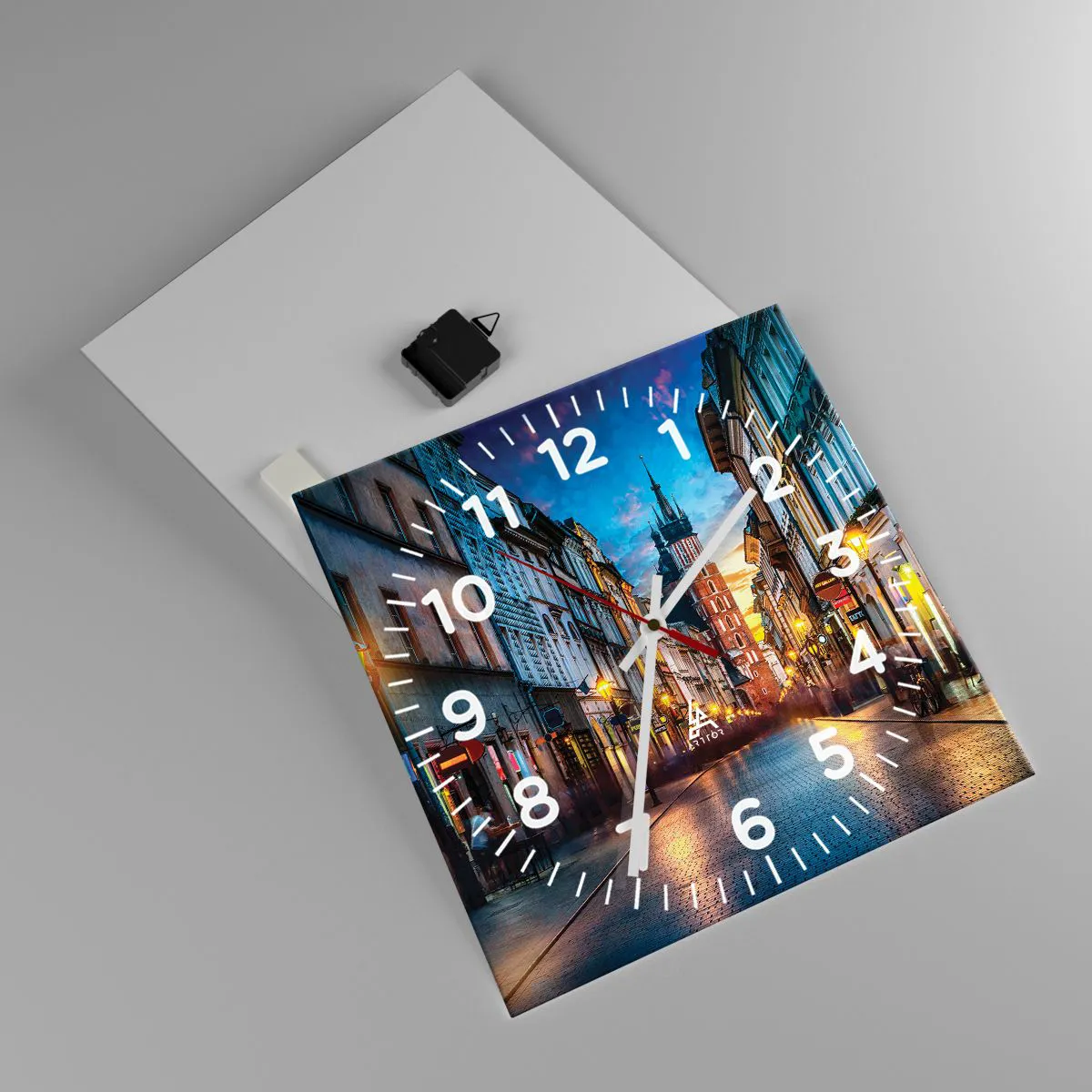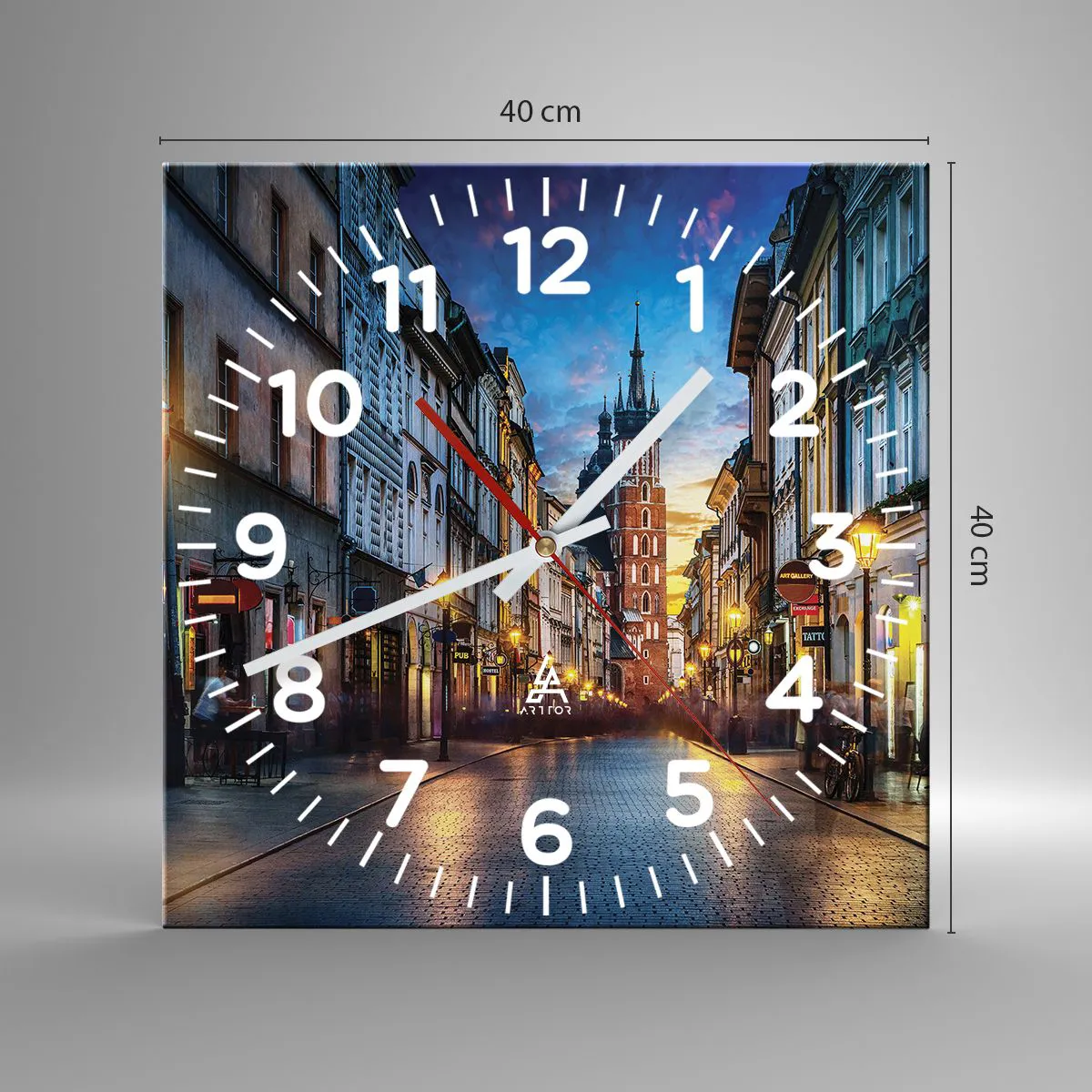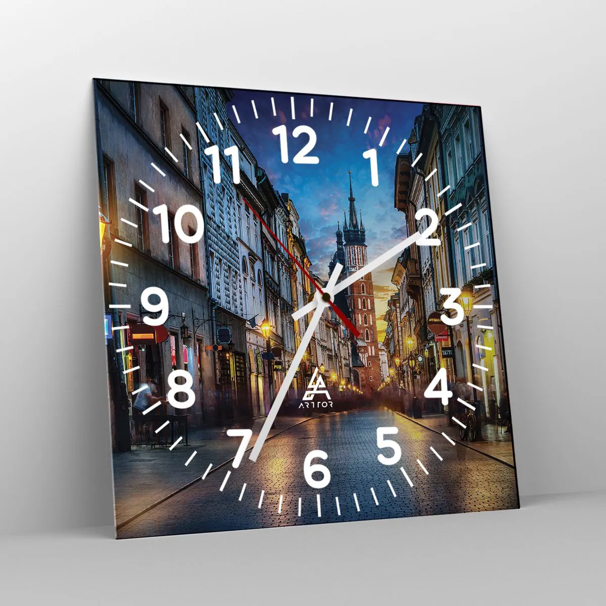 Ceas de perete - Ceas pe sticlă - Farmecul Cracoviei - 40x40 cm