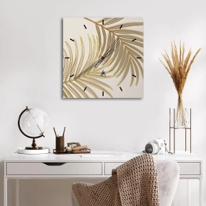 Ceas de perete - Ceas pe sticlă - Palmier de aur! - 40x40 cm
