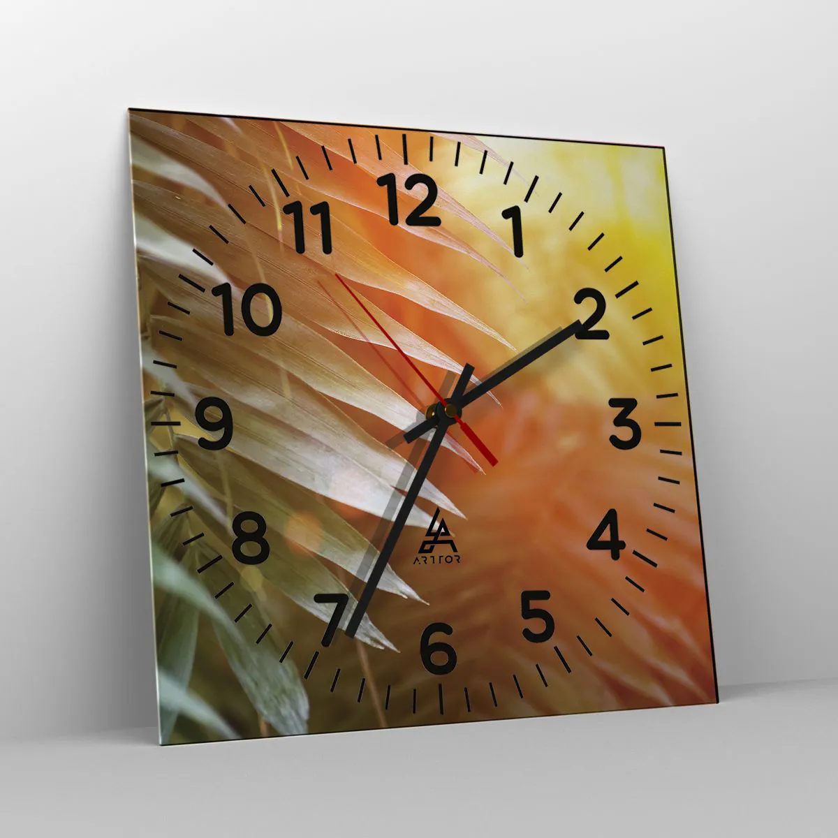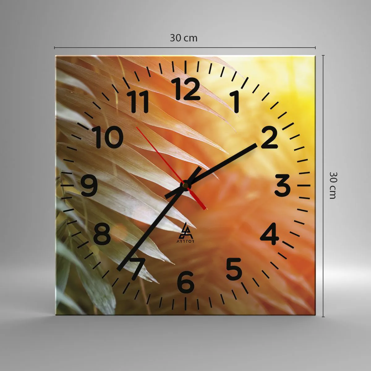 Ceas de perete - Ceas pe sticlă - Dimineață în junglă - 30x30 cm