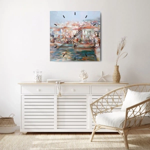 Ceas de perete - Ceas pe sticlă - Vacanță pastelată - 40x40 cm