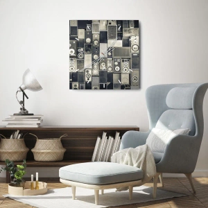 Ceas de perete - Ceas pe sticlă - Set de boxe în stil retro - 30x30cm - Și totul este în regulă - Decorațiune modernă pentru perete pentru living, bucătărie și dormitor ARTTOR