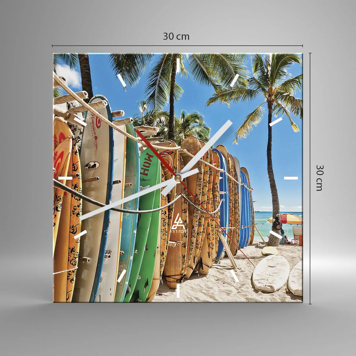 Ceas de perete - Ceas pe sticlă - Distracție însorită - 30x30 cm