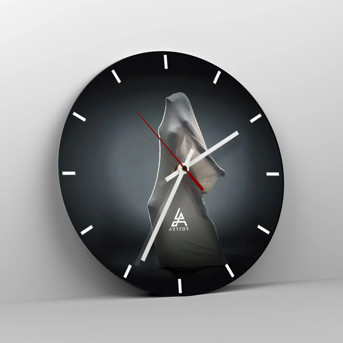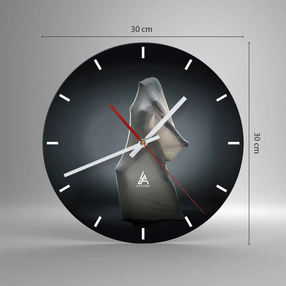 Ceas de perete - Dorințe ascunse - O figură învelită în material textil transparent, într-un stil artistic