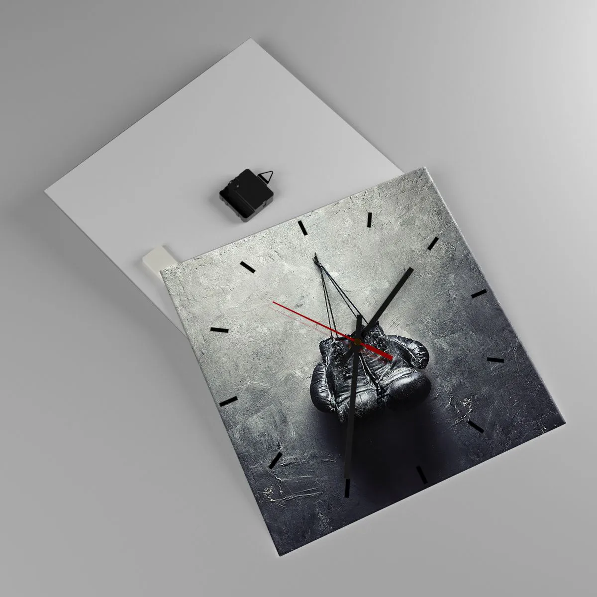Ceasul este fabricat din sticlă securizată de 4 mm grosime. Tehnologia de fabricație a ceasului respectă clasa de siguranță 2B2 conform EN 12600:2004, care garantează rezistența la impact. Ceasul din sticlă este gata de agățat - are o agățătoare metalică fixată la partea din spate a ceasului și un distanțier din spumă pentru a regla distanța uniformă a ceasului față de perete. Ceasul are un mecanism silențios care funcționează cu ajutorul unei baterii AA de 1,5 V (nu este inclusă).