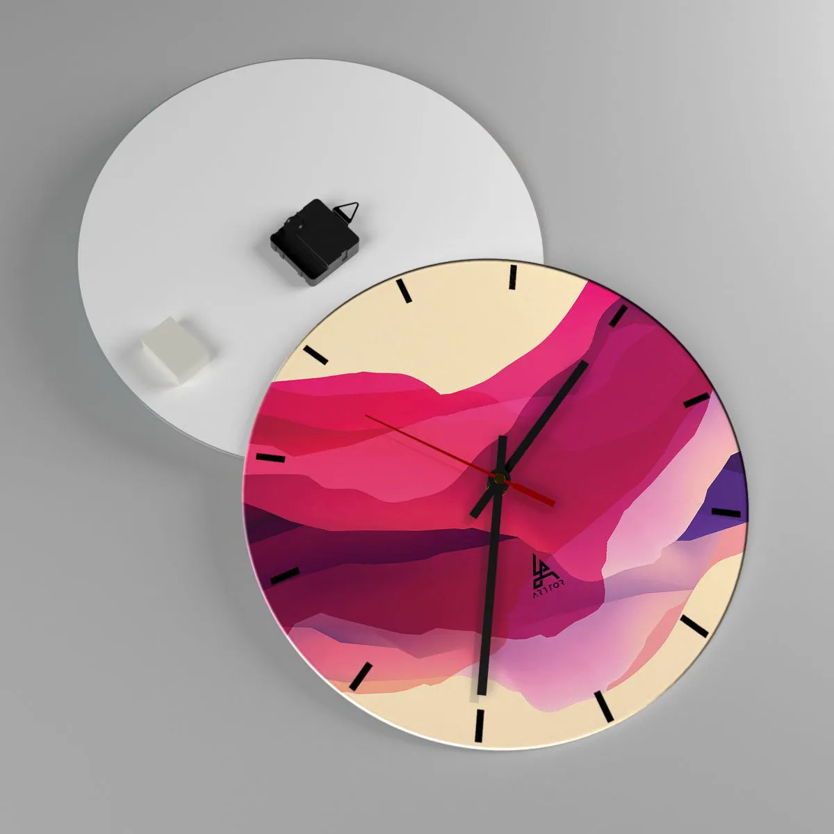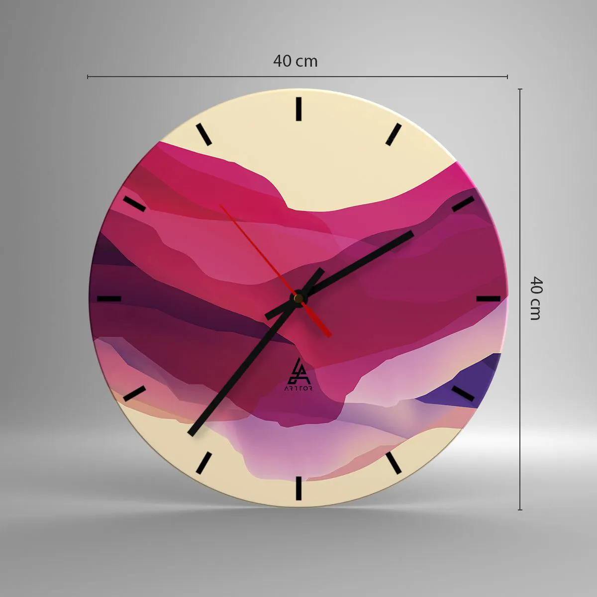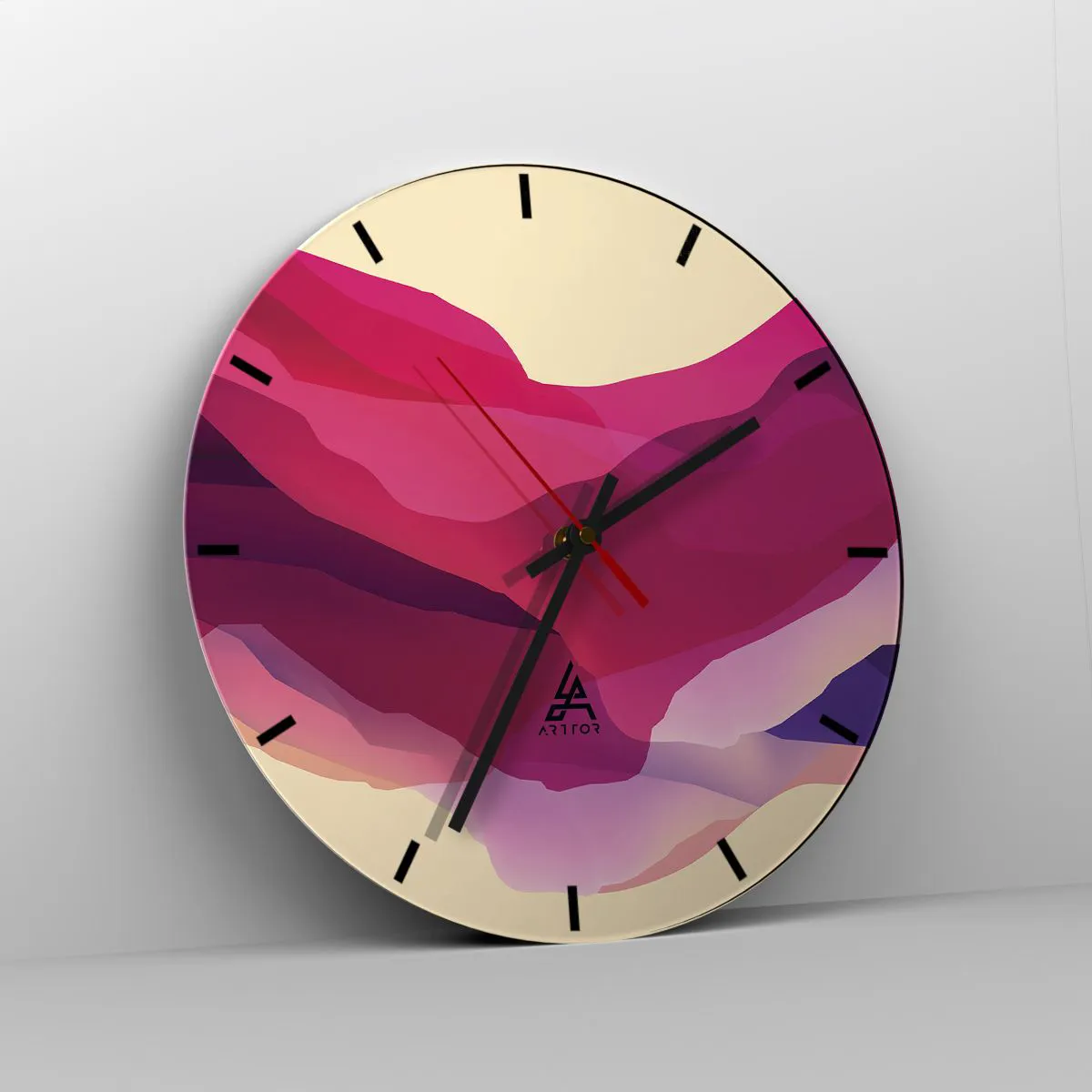 Ceas de perete - Ceas pe sticlă - Valuri de violet - 40x40 cm