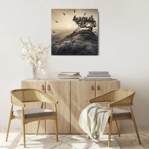 Ceas de perete - Ceas pe sticlă - Un copac singuratic pe o stâncă la apus - 30x30cm - Viața învinge întotdeauna - Decorațiune modernă pentru perete pentru living, bucătărie și dormitor ARTTOR