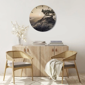 Ceas de perete - Viața câștigă mereu - Ceas decorativ cu motivul unui copac singuratic pe o stâncă
