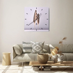 Ceas de perete - Ceas pe sticlă - Un motiv elegant de pene aurii pe un fundal deschis - 30x30cm - Împotriva neantului - Decorațiune modernă pentru perete pentru living, bucătărie și dormitor ARTTOR