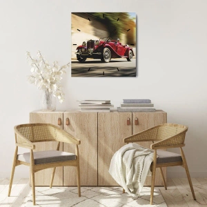 Ceas de perete - Ceas pe sticlă - Mașină sport clasică roșie în mișcare dinamică - 30x30cm - Mai frumoasă decât Nike din Samothrace - Decorațiune modernă pentru perete pentru living, bucătărie și dormitor ARTTOR