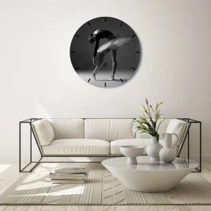 - Acest ceas de perete rotund de 30x30 cm prezintă o imagine elegantă alb-negru a unei balerine într-o poză clasică de dans. Un design elegant și minimalist care accentuează grația și subtilitatea mișcării.