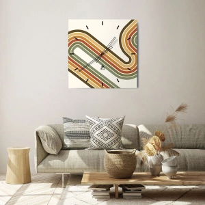Ceas de perete - Ceas pe sticlă - Linii geometrice în culori retro pe un fundal deschis - 30x30cm - Cu zigzag până la destinație - Decorațiune modernă pentru perete pentru living, bucătărie și dormitor ARTTOR