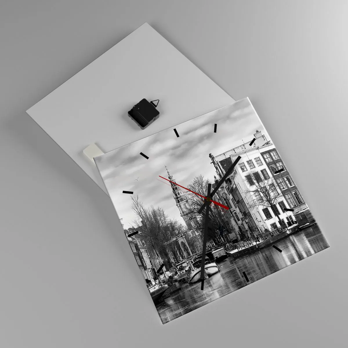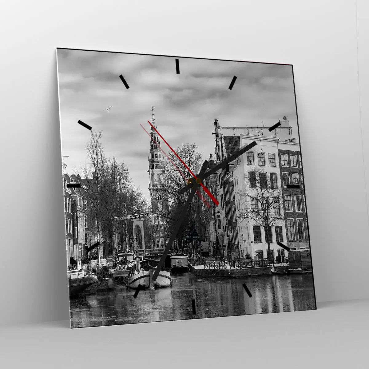 Ceas de perete - Ceas pe sticlă - Amsterdam vibes - 40x40 cm