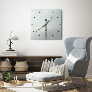 Ceas de perete - Ceas pe sticlă - Bărbat pe o scară într-un peisaj suprarealist - 30x30cm - Fii deasupra - Decorațiune modernă pentru perete pentru living, bucătărie și dormitor ARTTOR