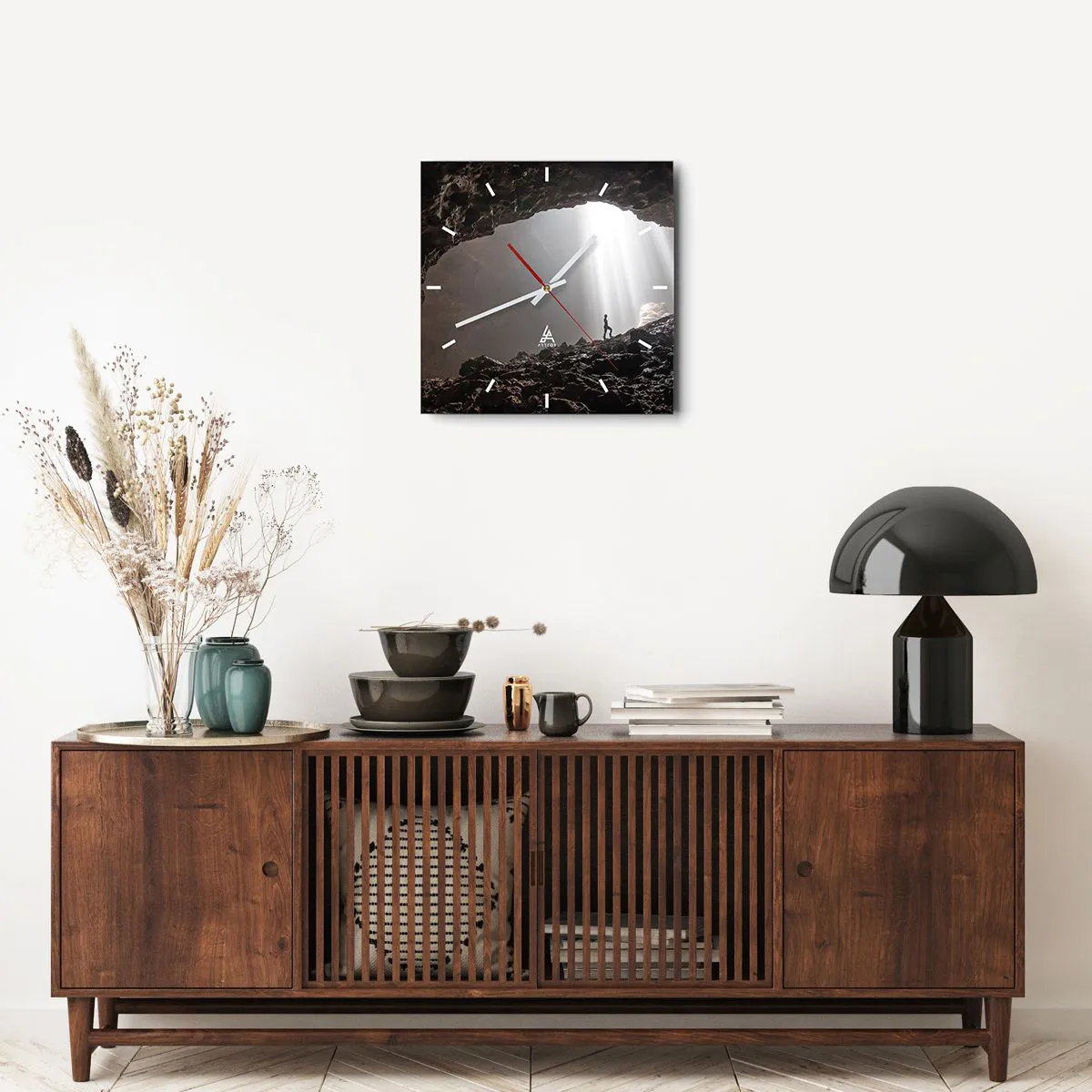 Ceas de perete - Ceas pe sticlă - Grota luminoasă - 40x40 cm