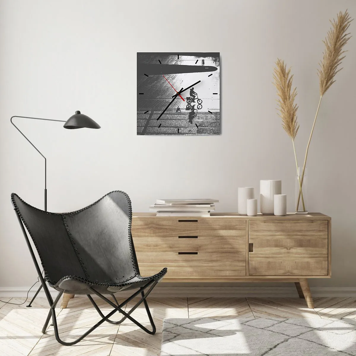 Ceas de perete - Ceas pe sticlă - Înainte, prin oraș - 40x40 cm