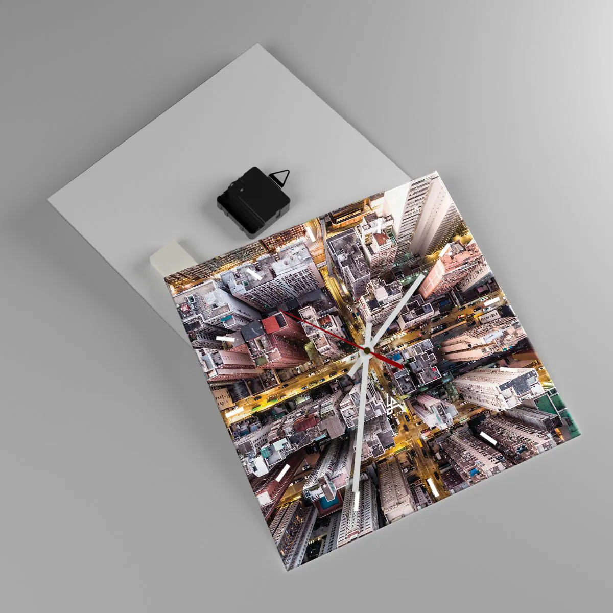 Ceas de perete - Ceas pe sticlă - Salutări din Hongkong - 30x30 cm