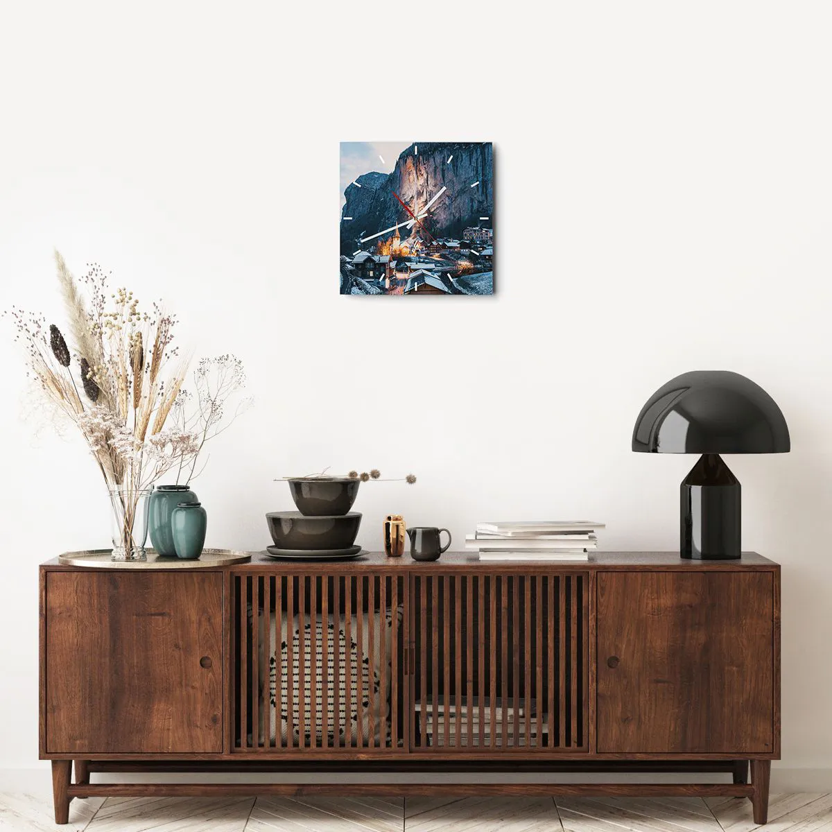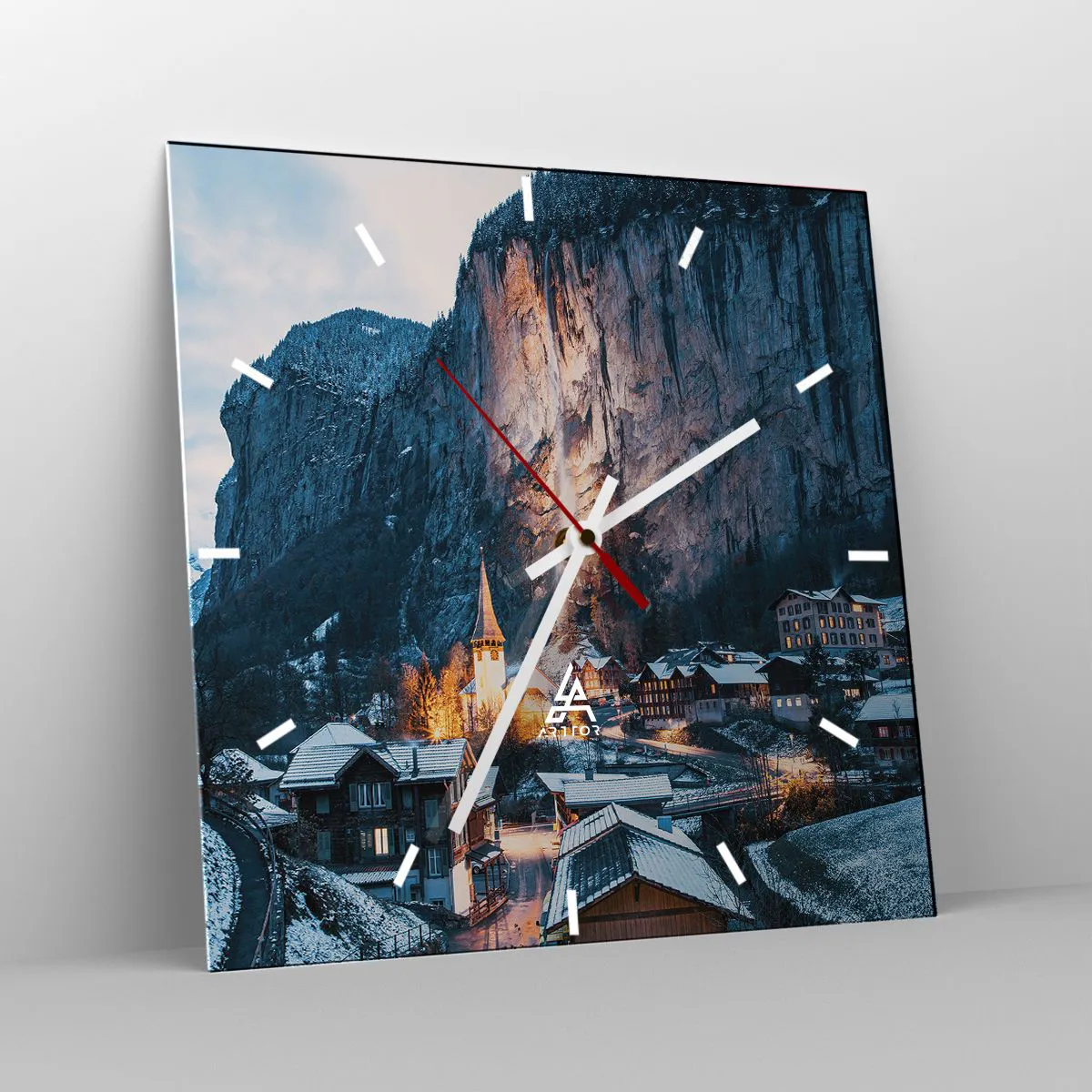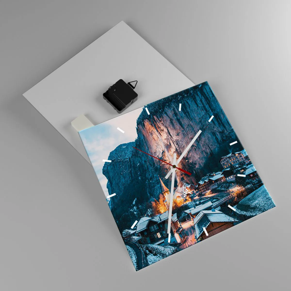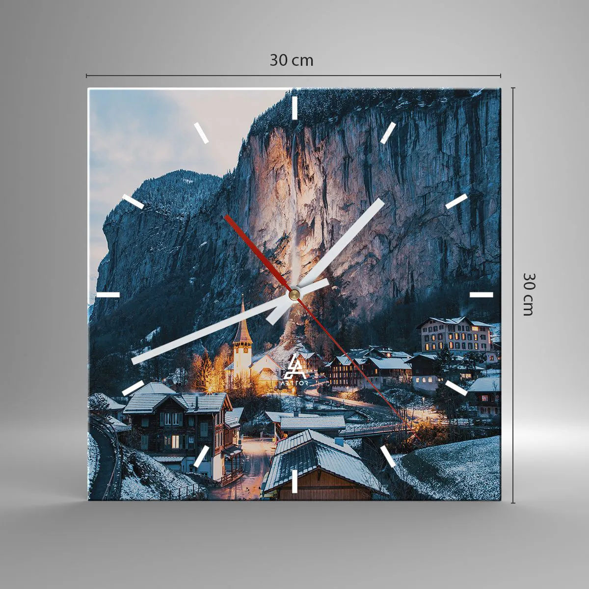 Ceas de perete - Ceas pe sticlă - Spiritul luminos al iernii - 30x30 cm